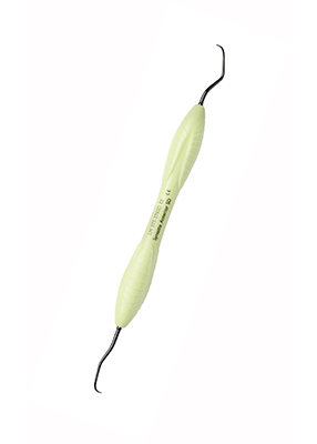 Curette för avlägsnande av supragingival och subgingival tandsten anteriort och i premolarområdet.