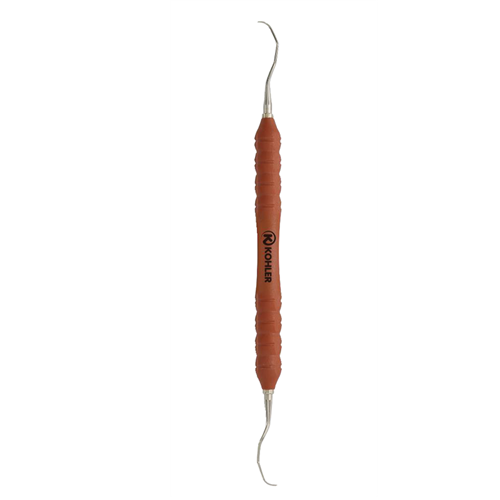 Starkt böjd. Designad för att nå distala ytor av alla posteriora tänder med minimal utspänd intilliggande mjukvävnad. Vid dessa svåråtkomliga ställen, kan spetsarna användas till att dubbelkontrollera arbetet i dess motsats genom att variera graden något av bladytans placering.• Stabila med låg vikt • Ger mycket bra grepp • HygieniskaDe extremt vassa spetsarna underlättar exakt subgingival borttagning.
