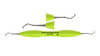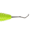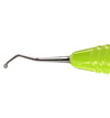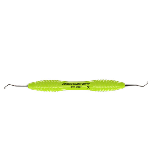 Excavator med runda arbetsdelar och skäregg, 2,0 mm. För att avlägsna kariöst dentin, för depurering av konkava ytor samt för avlägsnande av granulationsvävnad i samband med apikal resektion, flap operation och extraktion. Ergonomiskt ljusgrönt (lime) silikonhandtag, Ø 13,5 mm.