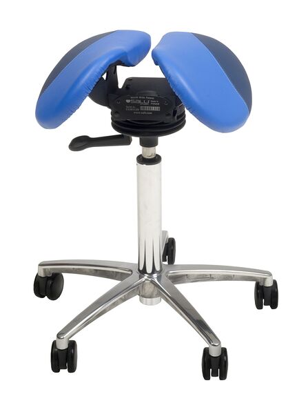Salli Swing sadelstolen med tvådelat säte, har en gungningsmekanism som möjliggör att sätet kan lutas åt alla håll utan en separat justeringsspak. Swing-mekanismen gör det möjligt för användaren att träna under sittandet, vilket bidrar till ökad rörlighet och metabolism i nedre delen av ryggen och aktivering av hela kroppen.Stolen anpassas efter dina behov, kontakta oss för färgval och utformning