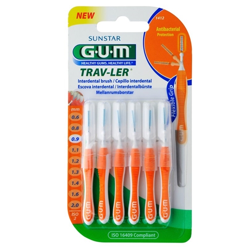 Mellanrumsborte med klorhexidinbehandlade strån, Plastbelagd tråd och flexibel skaft. Tar bort upp till 25% mer plack tack vare den innovativa triangulära formen av borsten.