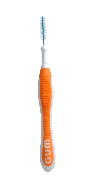 Mellanrumsborte med klorhexidinbehandlade strån, Plastbelagd tråd och flexibel skaft. Tar bort upp till 25% mer plack tack vare den innovativa triangulära formen av borsten.