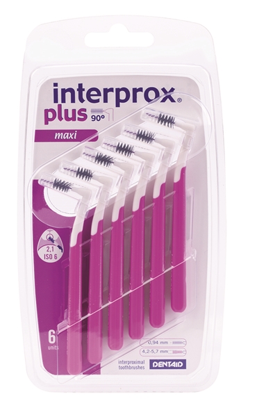 interprox vinkel plus har ett vinklat huvud för att förenkla rengöringen från både insidan och utsidan av tandraden. Varje borste består av ett kort 2-komponents skaft som ger god kontroll och en plasthylsa för att skydda borsten.