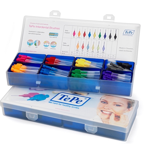 Förpackning: Kliniklåda med 8x15 st interdentalborstar original. (15 st av vardera storlek: 0,4 mm, 0,45 mm, 0,5 mm, 0,6 mm, 0,70 mm, 0,80 mm, 1,1 mm, 1,3 mm).