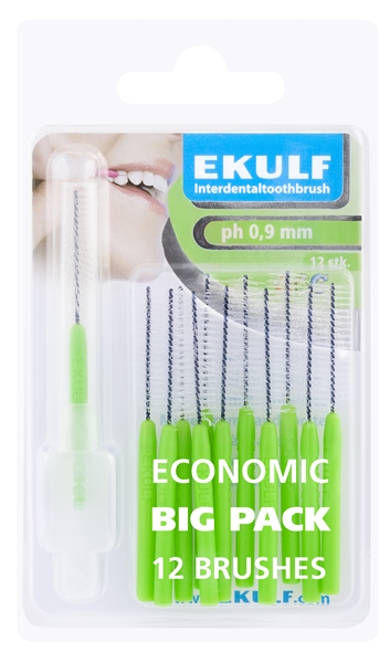 Mellanrumstandborste, grön. En av de större storlekarna i pH-serien. Passar för mycket stora tandmellanrum.