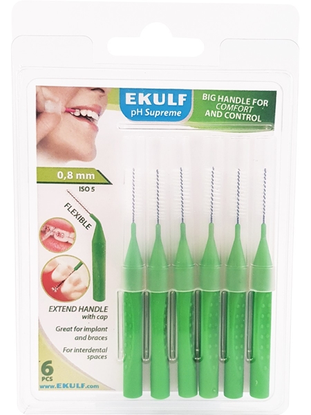 Avsedd för de som behöver lite större grepp på mellanrumstandborstar. Samtliga borstar är cylindriskt utformade och har hög kvalité på borst- och rengöringsförmåga. Med varje förpackning medföljer ett förlängningsskaft som kan användas som skydd för borsten samt för att enklare nå de bakre tänderna. Levereras i en praktisk återförslutningsbar förpackning.