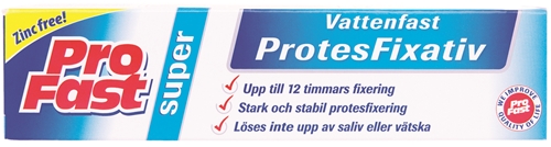 40gx12. ProFast Superfixativ är ett protesfixativ med en oöverträffad vidhäftningsförmåga tack vare att den inte är helt vattenlöslig. Fixativet löses inte heller upp av dryck eller saliv.