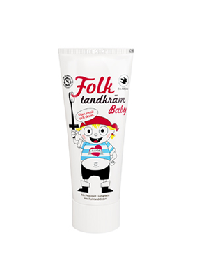 Mild fluortandkräm med neutral smak för det lilla barnets första tänder. Innehåller inga tillsatta smakämnen, färgämnen, skummedel eller konserveringsmedel. 1000 ppm fluor. RDA ca 50.