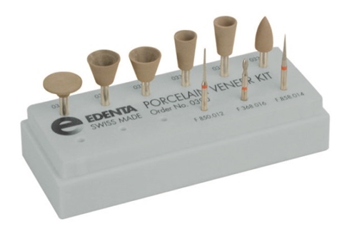 Ett kit med polerare speciellt designade för fasader av porslin. Innehåller 9st instrument, det lilla diamantinstrumentet (röd ring) används för att preparera tanden och silikon CeraPol instrumentet används för att få en slät och len yta.