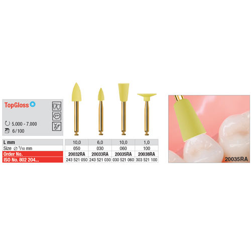 Diamantimpregnerad micropolerare för högglanspolering av kompomerer och komposit.
