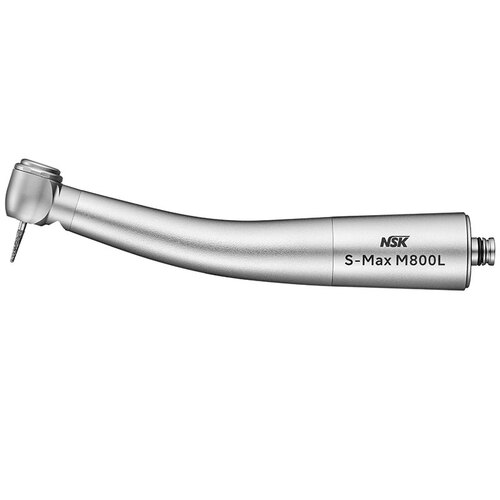 M800L turbinvinkelstycke i rostfritt stål med keramiska kullager. Utrustad med ljusledare som levererar LED-ljus via ljusstav, alternativt från diod i vinkelstycket (instrument för W&Hs koppling)