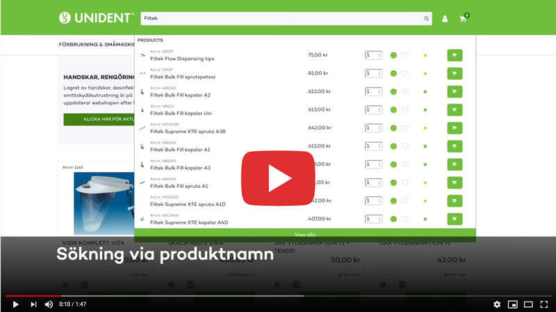 Med vår smarta sökfunktion kan du söka varor och direkt lägga dem i din kundvagn – utan att lämna sökresultatet.
